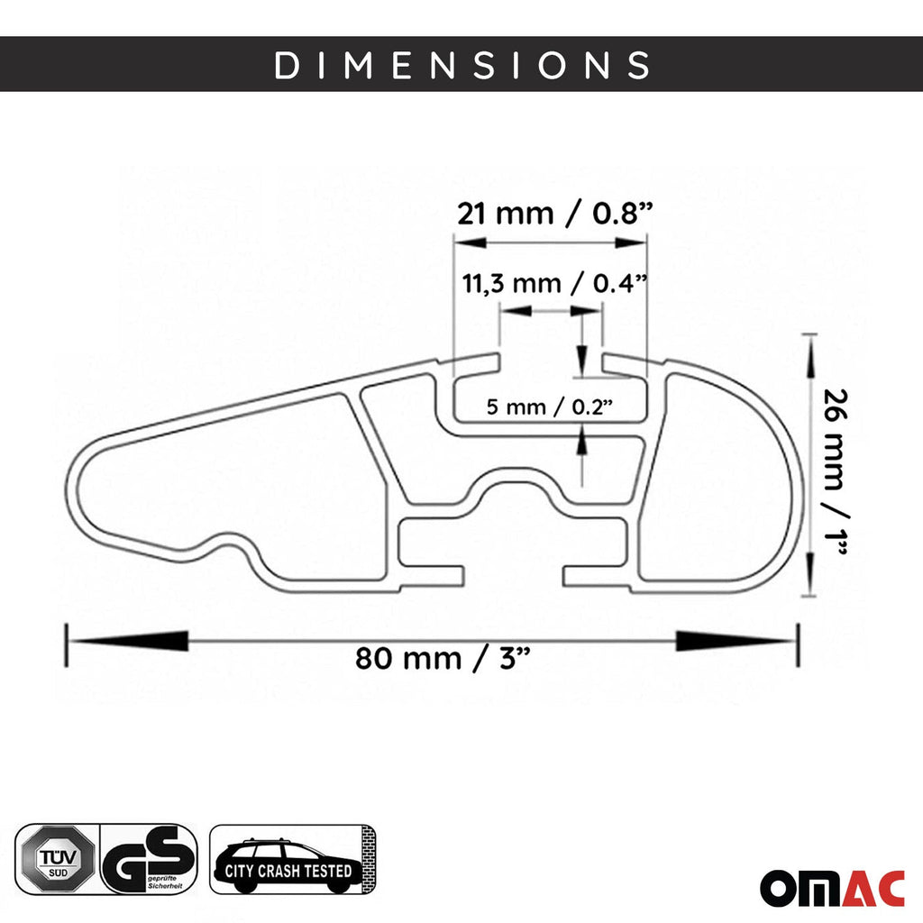 OMAC high-quality aluminum roof racks with European design & style. Its aerodynamic design and easy installation make it a perfect fit for your vehicle. This removable and lightweight rack is ultra durable, waterproof, and wind resistant. With low noise, it accommodates bike and ski carriers. It's also compatible with roof cargo boxes, luggage, and kayak carriers. Experience the versatility of our multifunctional cross bars for all your travel needs.